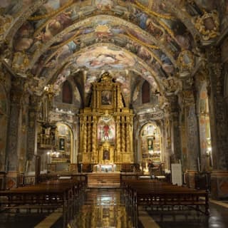 🎨 Contempla frescos del siglo XVII en el techo, así como capillas, altares y techos abovedados.