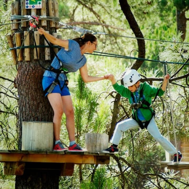 🎢 Disfruta de la emoción al deslizarte en tirolinas, atravesar puentes y divertirte saltando de árbol en árbol.