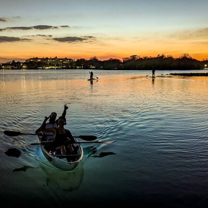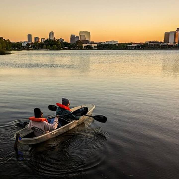 Dive into an unforgettable adventure and soak up Orlando's stunning sunsets from a unique perspective! Glide over crystal-clear waters as you marvel at the breathtaking skyline and dreamy homes along our serene lake system. Discover why this spot is a treasure among locals and enjoy a safe, mesmerizing journey. Curious about the gators? Just ask us! Get ready for an evening of beauty and tranquility. Get your tickets for Sunset Clear Kayak or Clear Paddleboard in Orlando!