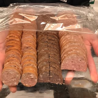 🐟 Sample Alaska's finest smoked salmon and reindeer sausage.