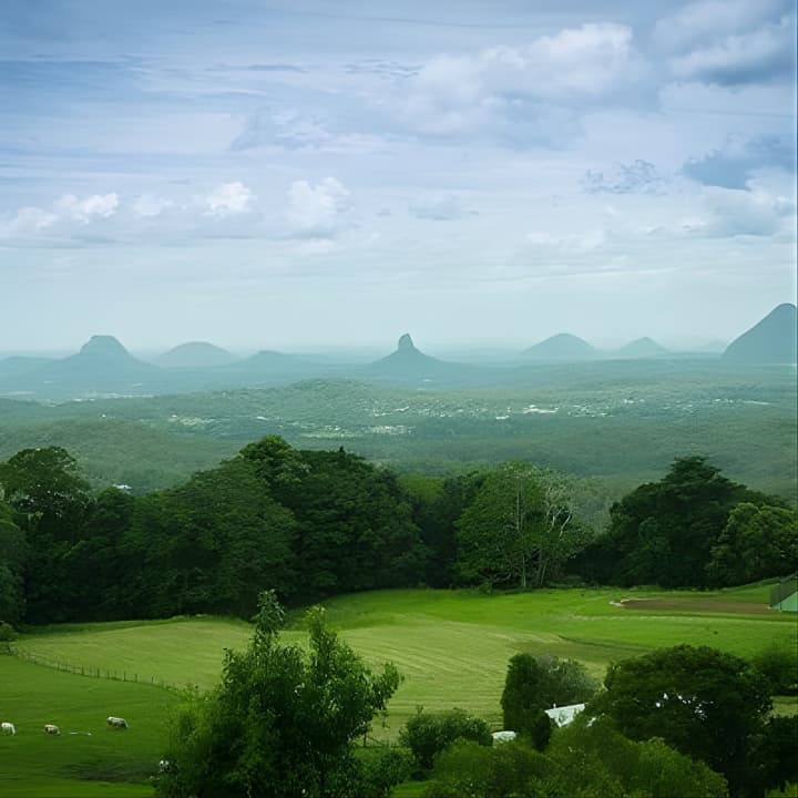 🌳 Get mesmerized by the stunning vistas of the Glass House Mountains at Mary Cairncross Scenic Reserve.