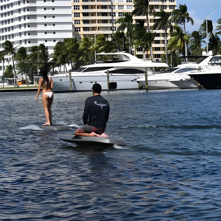 Ready to glide over the waves like never before? Experience the thrill of foiling – a serene yet exhilarating ride above Florida's picturesque waterways. Perfect for beginners eager to learn, we promise an adventure that lifts you straight out of the water and into pure bliss. Get your tickets for Double eFoil Lesson 2 People 2 Boards!