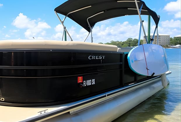 🚤 Glide to Crab Island in style with top-notch pontoon boats featuring bluetooth speakers and Bimini tops.