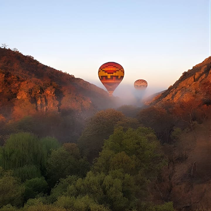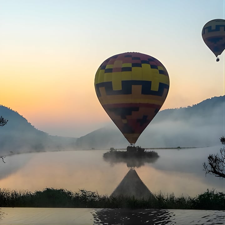 🎈 Soar above the stunning African landscape in a private hot air balloon with just you and your partner.