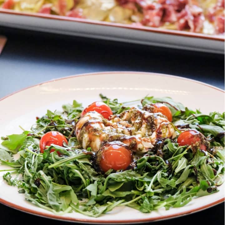 - Entrante (a elegir): ensaladilla con ventresca, croquetas caseras (jamón, bacalao o alcachofa), alcachofas con jamón o burrata con pesto.