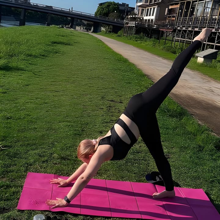 🌞 Start your day with a serene morning yoga session by the river in Kyoto.