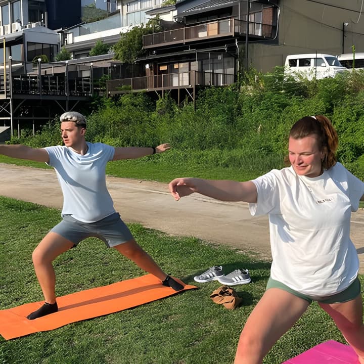 Kickstart your mornings with an invigorating yoga session by the river in Kyoto, exclusively in English! Embrace the serene sounds of nature and breathe in the fresh air as you stretch and strengthen. It's the perfect way to enhance your Kyoto adventure, meet new friends, and connect with people from around the globe. Get your tickets for Yoga by the river in Kyoto!