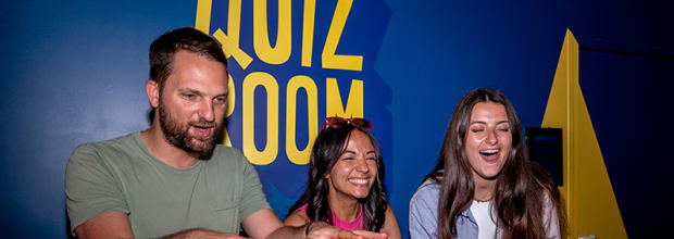 Experience the thrill of a live TV quiz show with Quiz Room. Play, compete, and laugh with your group as lights and smoke set the scene of a real studio. Use your wild cards, show off your reflexes, and prove your wits in an experience that’s as fun as it is unique